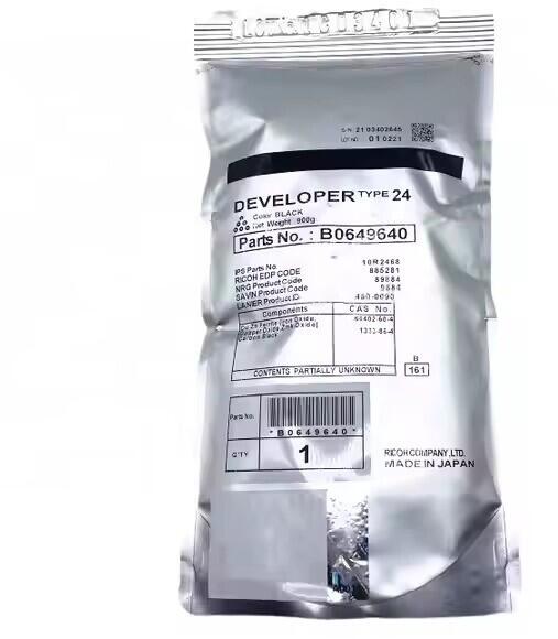 Ricoh T24 B0649640 fekete (black) eredeti developer, Eredeti fejlesztő a Ricoh nyomtatóhoz. Remek választás a mindennapi nyomtatáshoz üzleti dokumentumok, számlák, táblázatok, grafikonok vagy képek esetén. Az eredeti Ricoh fejlesztőnek köszönhetően mindent könnyedén és professzionális minőségben nyomtathat. Miért vásárolja meg az eredeti fejlesztőnket? Eredeti fejlesztő = közvetlenül a nyomtató gyártójától származó garancia 100% használat a nyomtatóban - problémamentes működés Az eredeti fejlesztő használatával meghosszabbítja a nyomtató élettartamát Bevált csúcsminőség - az eredeti fejlesztő kivételes eredményeket nyújt Tartós és professzionális nyomtatási eredmények - hosszú távú nyomtatási fenntarthatóság Nyomtatási termelékenység - azonos nyomtatás teljes élettartama alatt Maximális könnyű kezelhetőség = hatékony nyomtatás Garantáljuk az elégedettséget az eredeti fejlesztő használatával Biztosítjuk az ingyenes újrahasznosítást az eredeti patronok számára